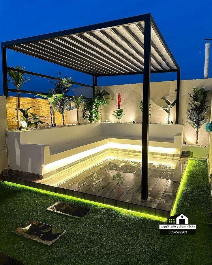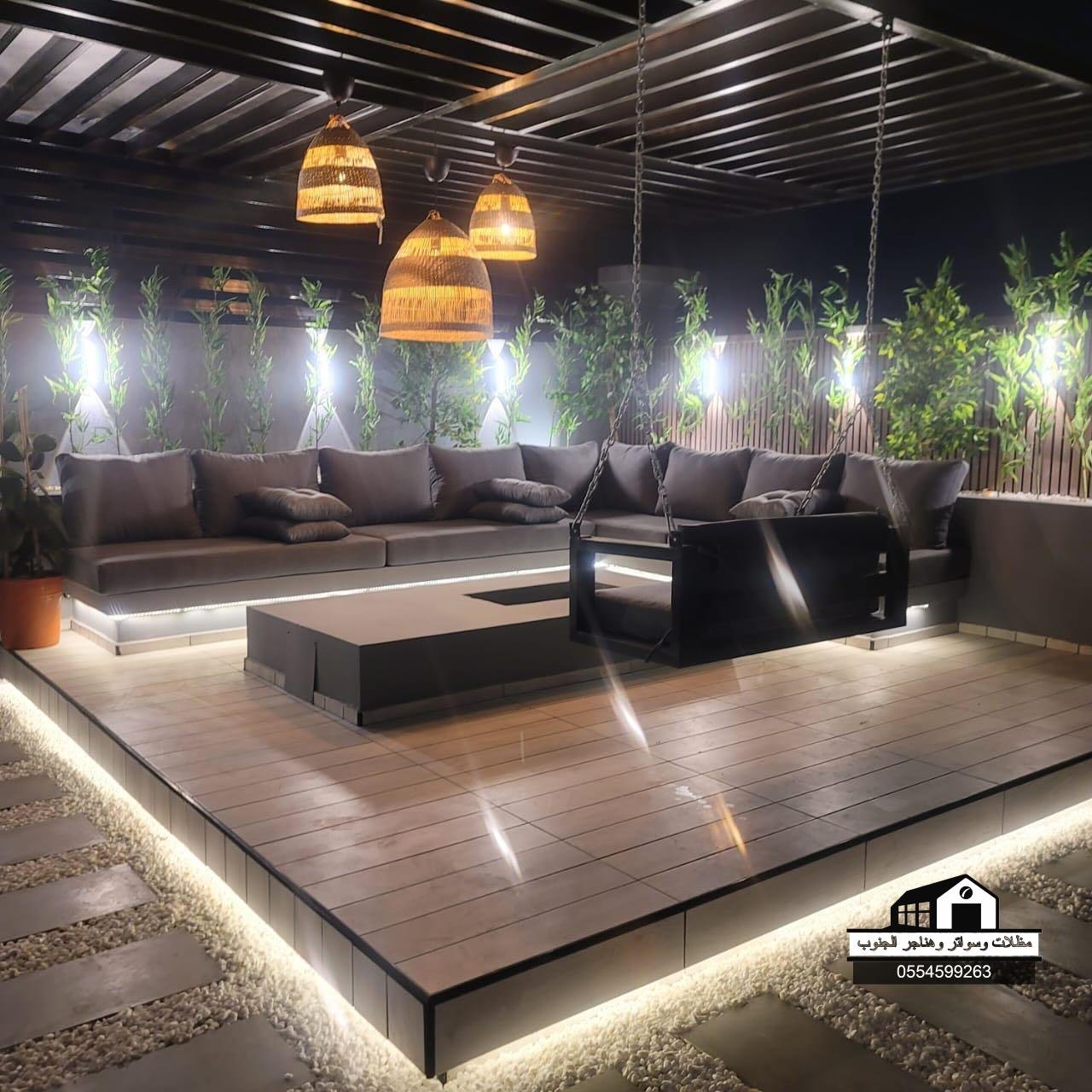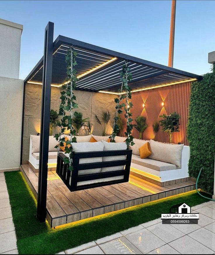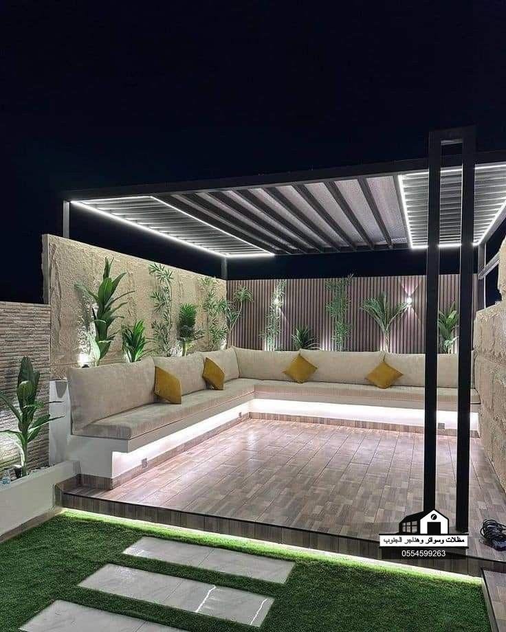 يساهم المزج بين العناصر الطبيعية في إعادة الحياة إلى الجلسة. من الضروري زرع النباتات حول المساحة، حيث تعزز من جمال المشهد وتوفر مناخًا هادئًا ومريحًا. يفضل اختيار أنواع النباتات التي تتناسب مع الظروف المناخية المحلية، حيث تقدم ألوانًا متنوعة وتضفي الحيوية على المكان. بالإضافة إلى ذلك، فإن إضافة عناصر مائية مثل النافورات أو برك السباحة الصغيرة تعتبر خطوة ذكية، حيث تضفي لمسة من الجمال وتساعد في خلق صوت مهدئ.
